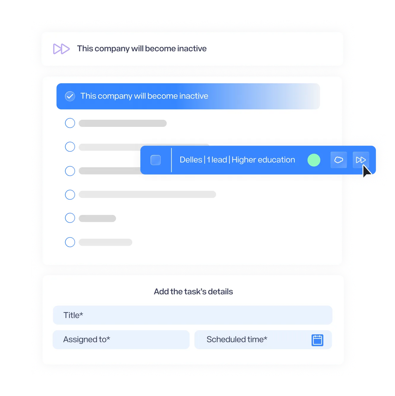Monitor and manage your inactive leads or in the process of being followed up, without scheduled future tasks. With the help of digital assistants, users are guided through the platform and are reminded to interact with potential customers, so they don't fall into oblivion.